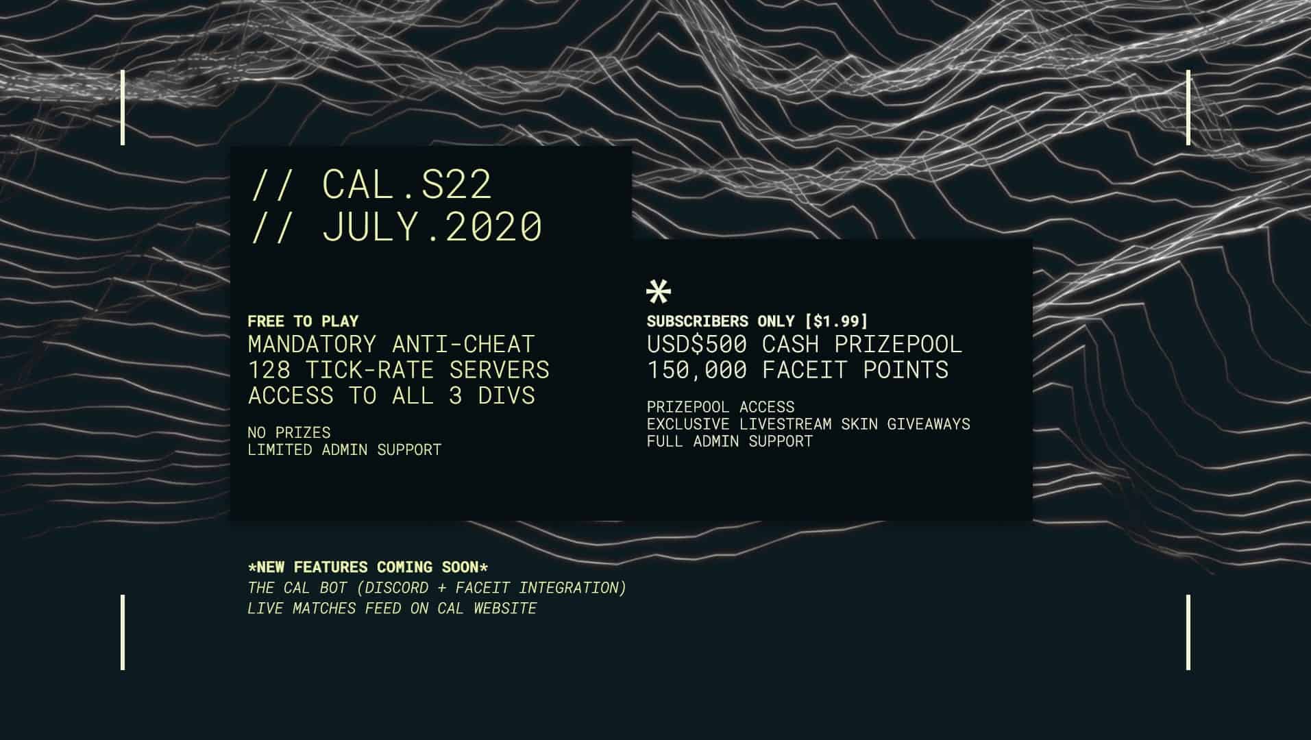 CAL Season 22 is here! This month, we’ve taken a step back as we prepare for a ton of new features and upgrades in CAL. This season is going to be treated as a ‘test’ season as we roll out new features starting in August (Season 23).